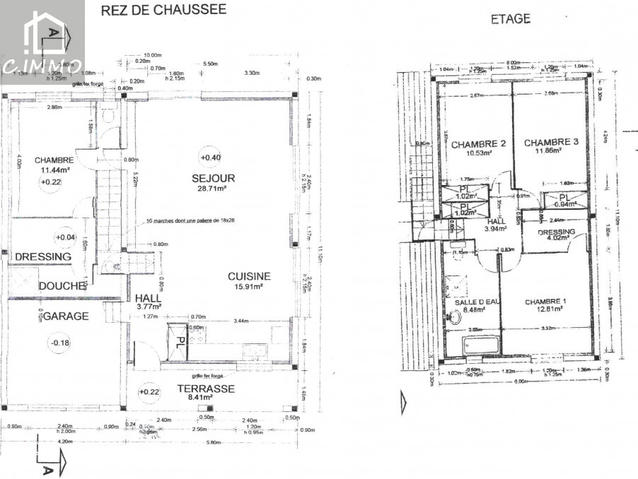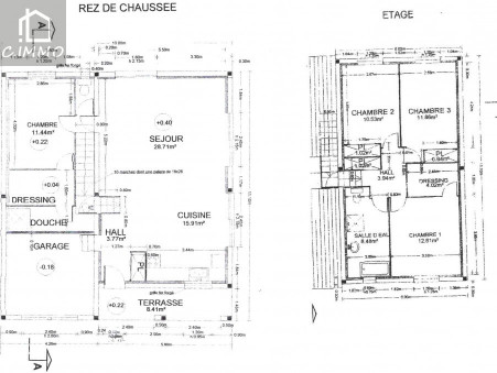 Vous trouverez ensuite, au premier étage : une salle de bain avec baignoire, douche et wc, 3 chambres avec aménagements et une pièce de rangement sous combles de plus de 16 m².